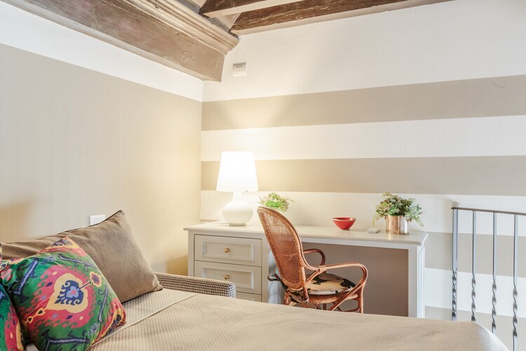 Ce spacieux appartement de 100 m² est meublé avec goût et équipé avec soin pour un séjour confortable. Détendez-vous dans le salon chaleureux ou concoctez un festin toscan dans la cuisine moderne équipée d'une plaque à induction, d'un four, d'un micro-ondes, d'un lave-vaisselle et de tous les ustensiles et appareils électroménagers essentiels, dont un presse-agrumes, une bouilloire et une machine à café. Les deux chambres paisibles (l'une avec un lit double, l'autre avec des lits jumeaux) vous garantissent une nuit de sommeil réparatrice. L'appartement dispose d'une salle de bain complète, de la climatisation, d'une pompe à chaleur, du Wi-Fi, d'un lave-linge, d'un sèche-linge et d'une télévision.