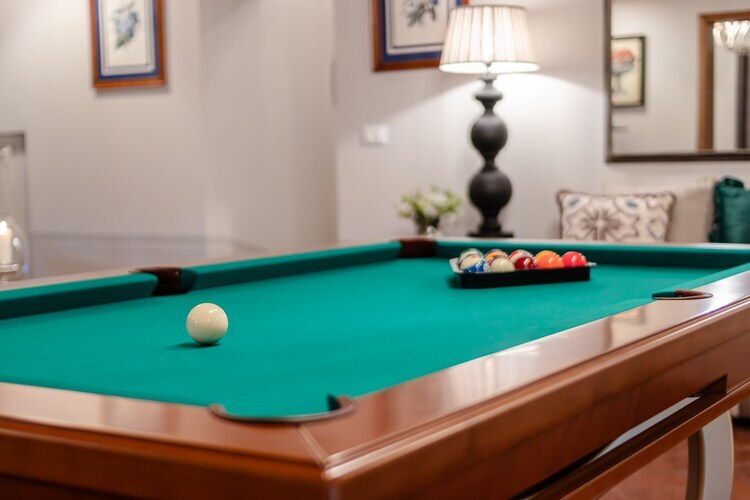Rez-de-chaussée: (Salle de séjour(TV, coin salon), salle à manger(table), cuisine(bouilloire, grille-pain, cafetière/percolateur, four, micro ondes, lave-vaisselle , réfrigérateur, congélateur, Presse-agrumes, ), chambre(lit simple, lit simple), chambre avec salle de bains(lit double, douche)) Au 1er étage: (Salle de séjour(billard), chambre(lit simple, lit simple), chambre(lit double), chambre(lit double), chambre avec salle de bains(lit double, baignoire, douche), salle de bains(douche), salle de bains(douche)) Meubles de jardin, cheminée, sèche-linge, lit bébé, lave-linge , climatisation, jardin, barbecue, parking, piscine(privé), chaise haute, fer à repasser, sèche-cheveux