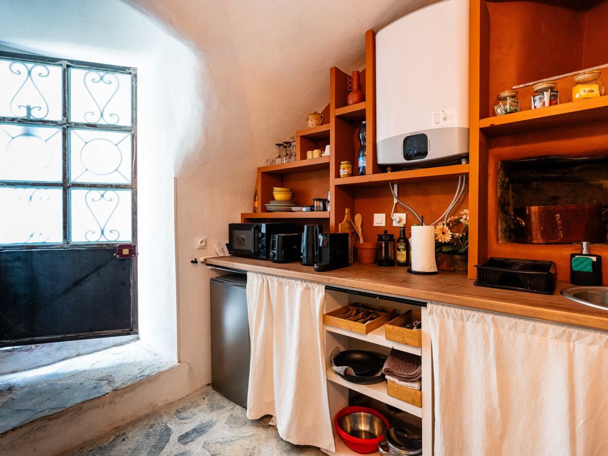 Coin cuisine (2 plaques à induction, grille-pain, bouilloire électrique, four à pizza, combiné micro-ondes).