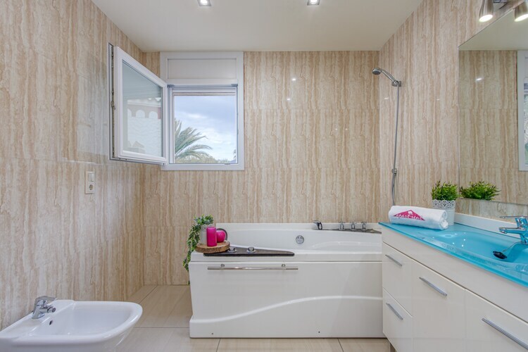 La villa est entièrement équipée avec une cuisine équipée de plaques vitrocéramiques, d'un réfrigérateur, d'un four, d'un micro-ondes, d'un lave-vaisselle et d'une machine à café. Vous profiterez d'une grande terrasse avec salon de jardin et barbecue, ainsi que de tout le confort moderne comme le Wi-Fi, la télévision par satellite, la climatisation et le chauffage par pompe à chaleur. Avec trois salles de bains (deux avec douche et une avec baignoire) et des toilettes supplémentaires, cet hébergement est idéal pour les familles ou les groupes.