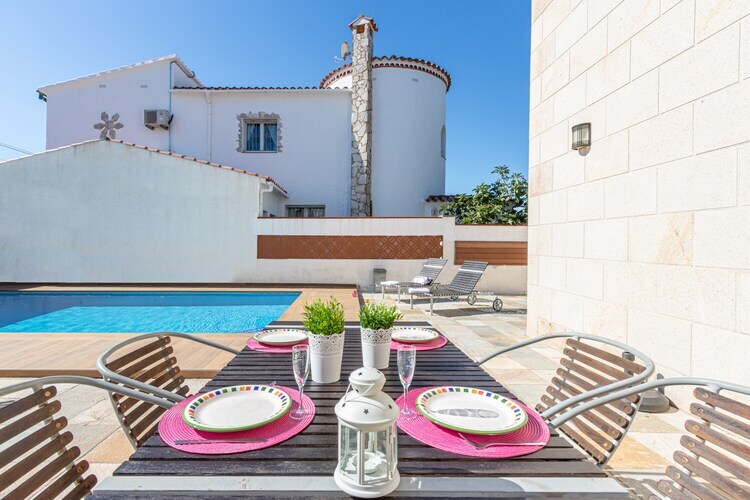 Les équipements supplémentaires comprennent un lave-linge, un fer à repasser et un parking extérieur. La propriété accepte les animaux de compagnie sur demande et bénéficie d'un emplacement idéal à proximité du golf de Peralada (15 km), de la gare AVE/TGV de Figueras (20 km) et de l'aéroport de Gérone (65 km). Avec son emplacement au bord du canal, sa piscine privée et son studio indépendant, cette villa est idéale pour des vacances reposantes et bien équipées sur la Costa Brava.