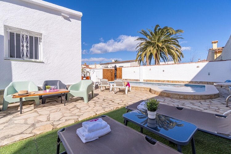Cette villa lumineuse et confortable de 105 m² située à Empuriabrava est idéale pour les familles ou les groupes jusqu'à 8 personnes. Dotée de quatre chambres doubles et de deux salles de bains avec douche, la maison offre un cadre spacieux et chaleureux. La propriété dispose d'une piscine privée, d'un jardin clôturé, d'une terrasse meublée et d'un barbecue : idéal pour profiter des beaux jours et des repas en plein air dans un cadre résidentiel paisible.