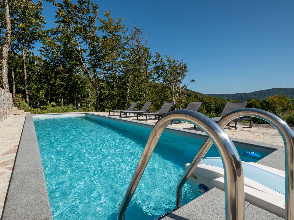 Autour du chalet, vous pouvez profiter d'un terrain de 10 000 m². La piscine est rectangulaire. Sa superficie est de 6 x 4 m et sa profondeur est de 150 cm. La terrasse de 70 m² est un bon endroit pour s'installer confortablement et se reposer. Le chalet comporte aussi une tonnelle, un terrain de pétanque et une douche extérieure.