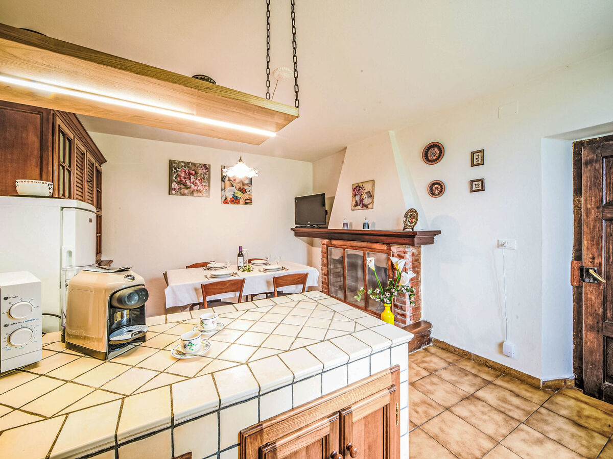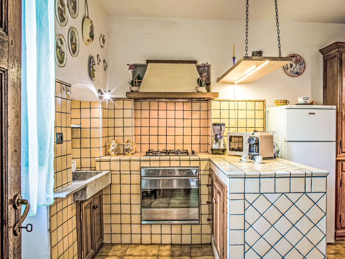 Aménagement fonctionnel et confortable: (four, 4 feux, grille-pain, bouilloire électrique, micro-ondes, cafetière électrique) avec cheminée, table pour les repas et TV (satellite).