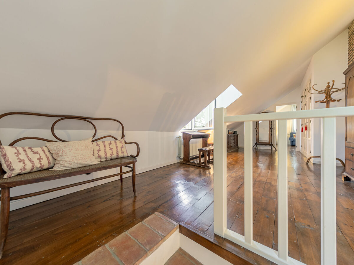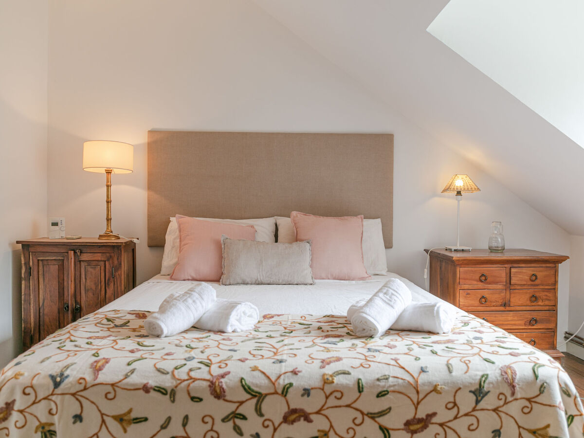 À l'étage supérieur: 1 chambre avec 1 grand-lit (150 cm, longueur 190 cm).