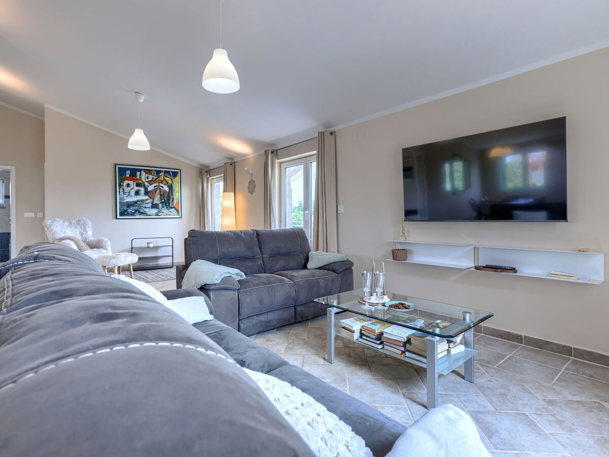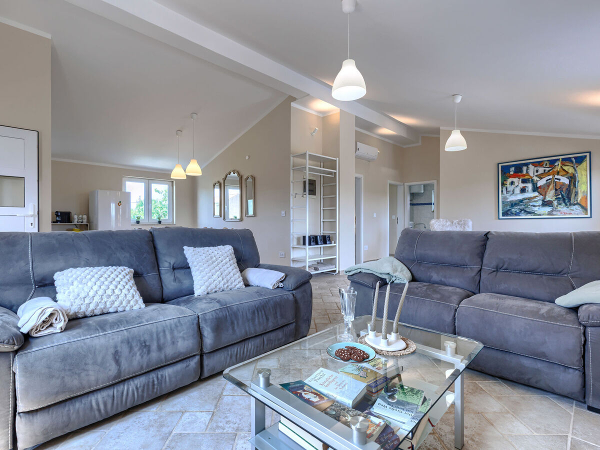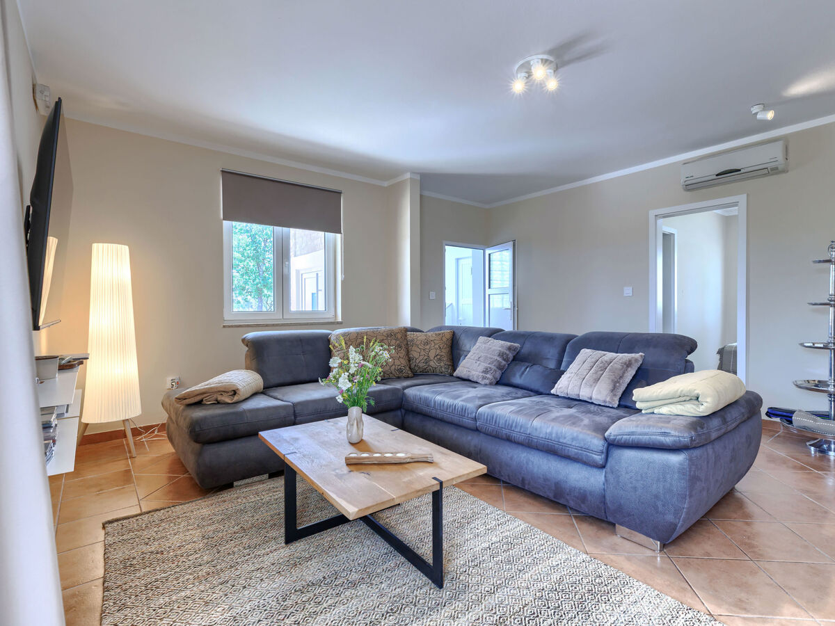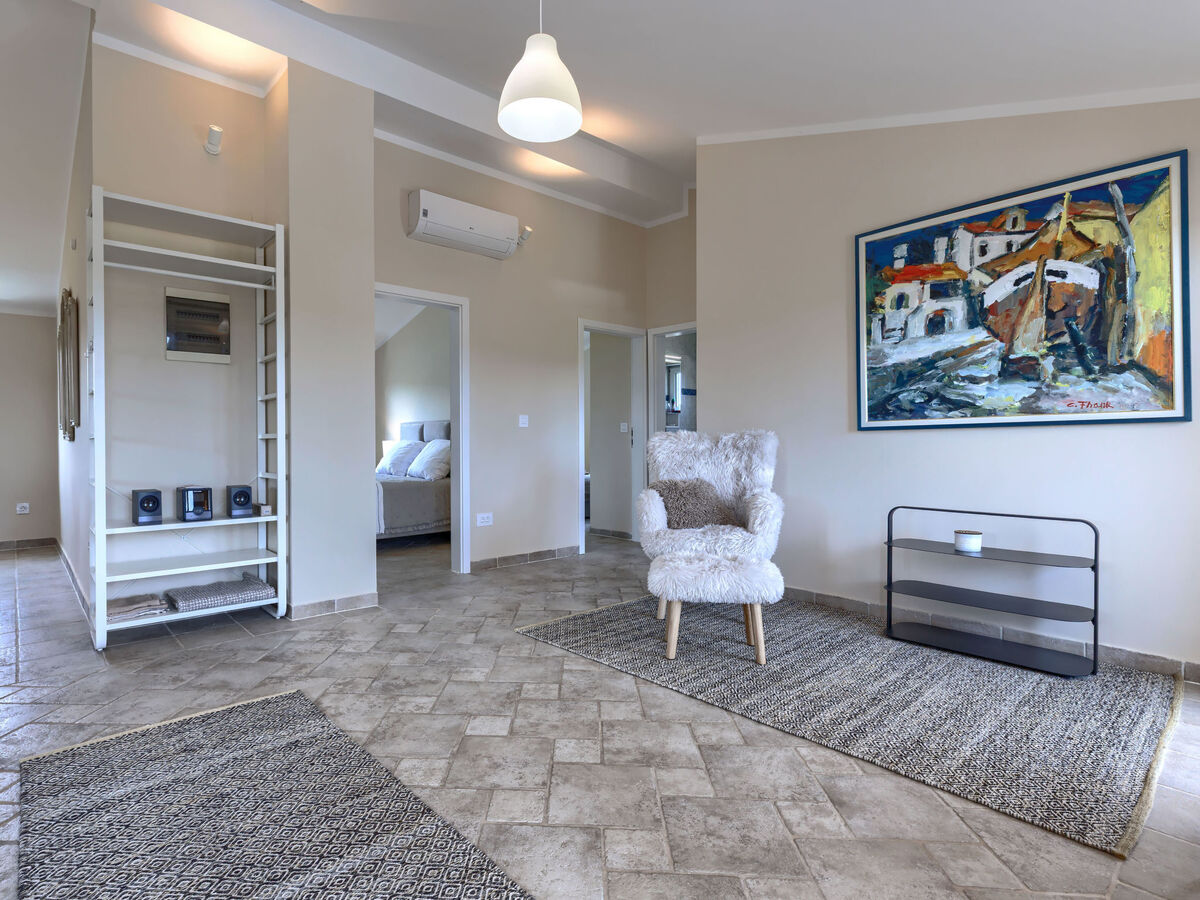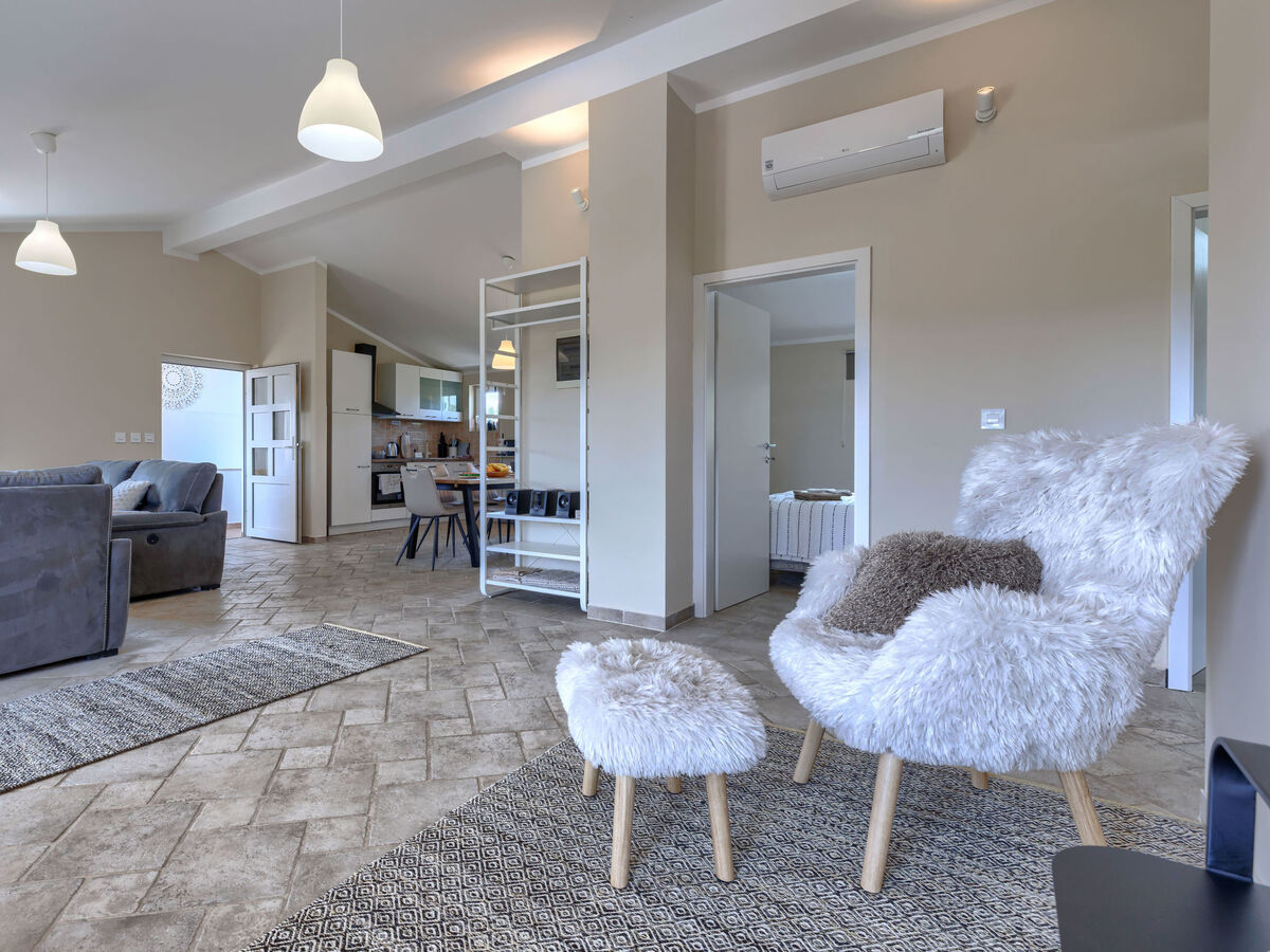 Aménagement confortable: séjour avec TV (satellite) et air-conditionné.