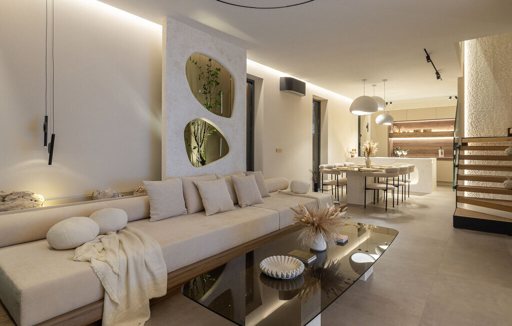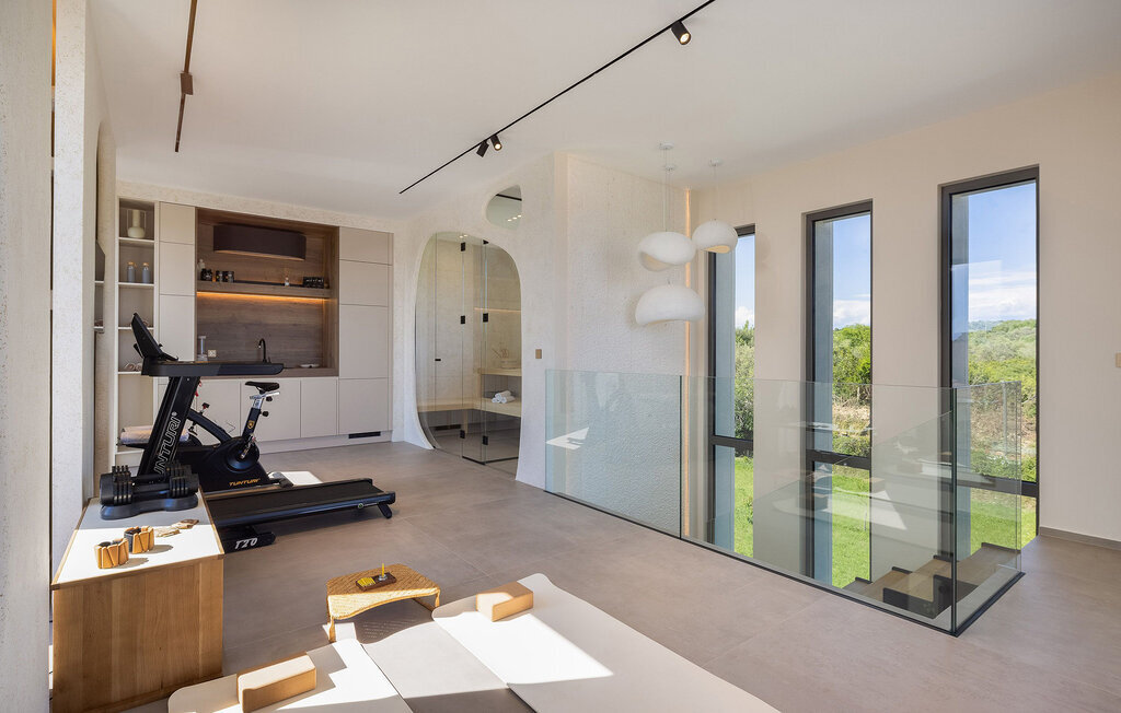 Dans cette maison, les lignes claires et l'élégance intemporelle se rencontrent. Installez-vous dans les canapés confortables, savourez un verre de vin ou détendez-vous en regardant votre série préférée. Dans la cuisine design moderne, cuisiner ensemble est deux fois plus amusant, une bonne condition pour des soirées conviviales en famille ou entre amis. Pour faire de l'exercice et se sentir bien, une salle de fitness et un sauna sont à votre disposition.