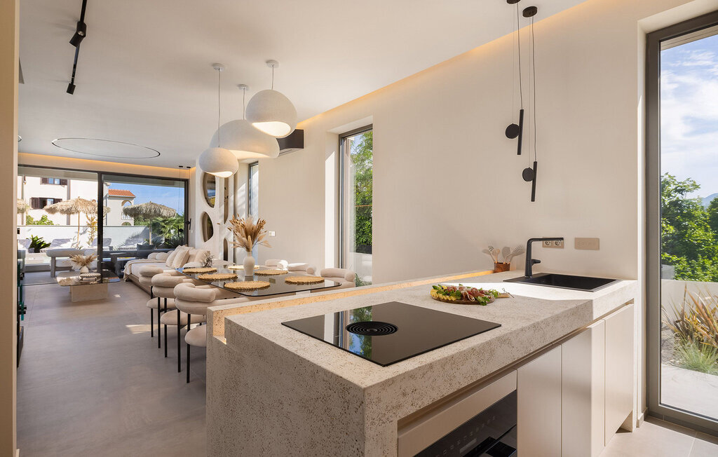 La plage toute proche est idéale pour nager, prendre des bains de soleil et se détendre. Découvrez la magnifique côte lors d'une excursion en kayak ou en bateau et trouvez des criques cachées. Visitez la vieille ville de Zadar, située à proximité, avec des points forts tels que l'orgue de mer et le jeu de lumière Salutation au soleil. Les amoureux de la nature seront comblés par des excursions dans les parcs nationaux de Plitvice, Kornati ou Paklenica.
