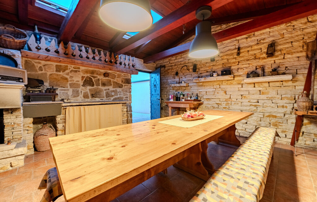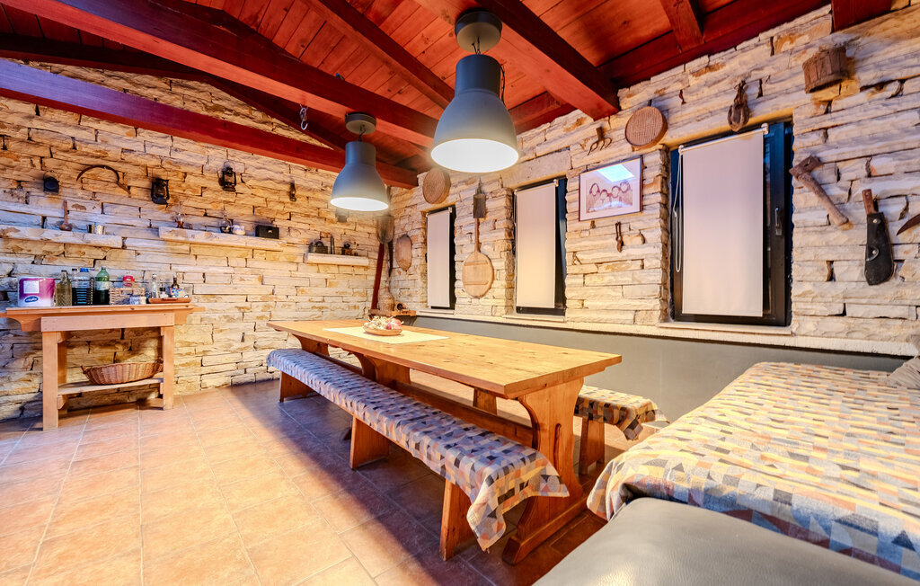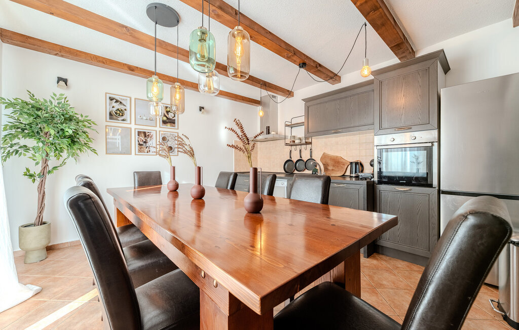Dans cette maison de vacances, vous trouverez un intérieur élégant avec beaucoup de bois, des couleurs chaudes et des accents confortables. Installez-vous confortablement sur le canapé de la grande salle de séjour et profitez de soirées cinéma relaxantes. La cuisine moderne avec sa grande table à manger vous invite à cuisiner ensemble et à prendre vos repas en toute convivialité. La taverne rustique est un véritable point fort, idéal pour les longues soirées autour d'un bon repas et d'un verre de vin.