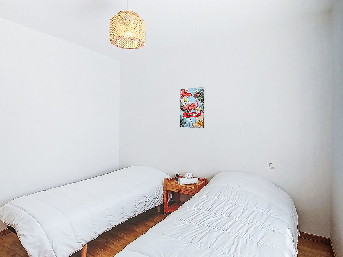 1 chambre avec 1 grand-lit (1 x 140 cm, longueur 190 cm).
