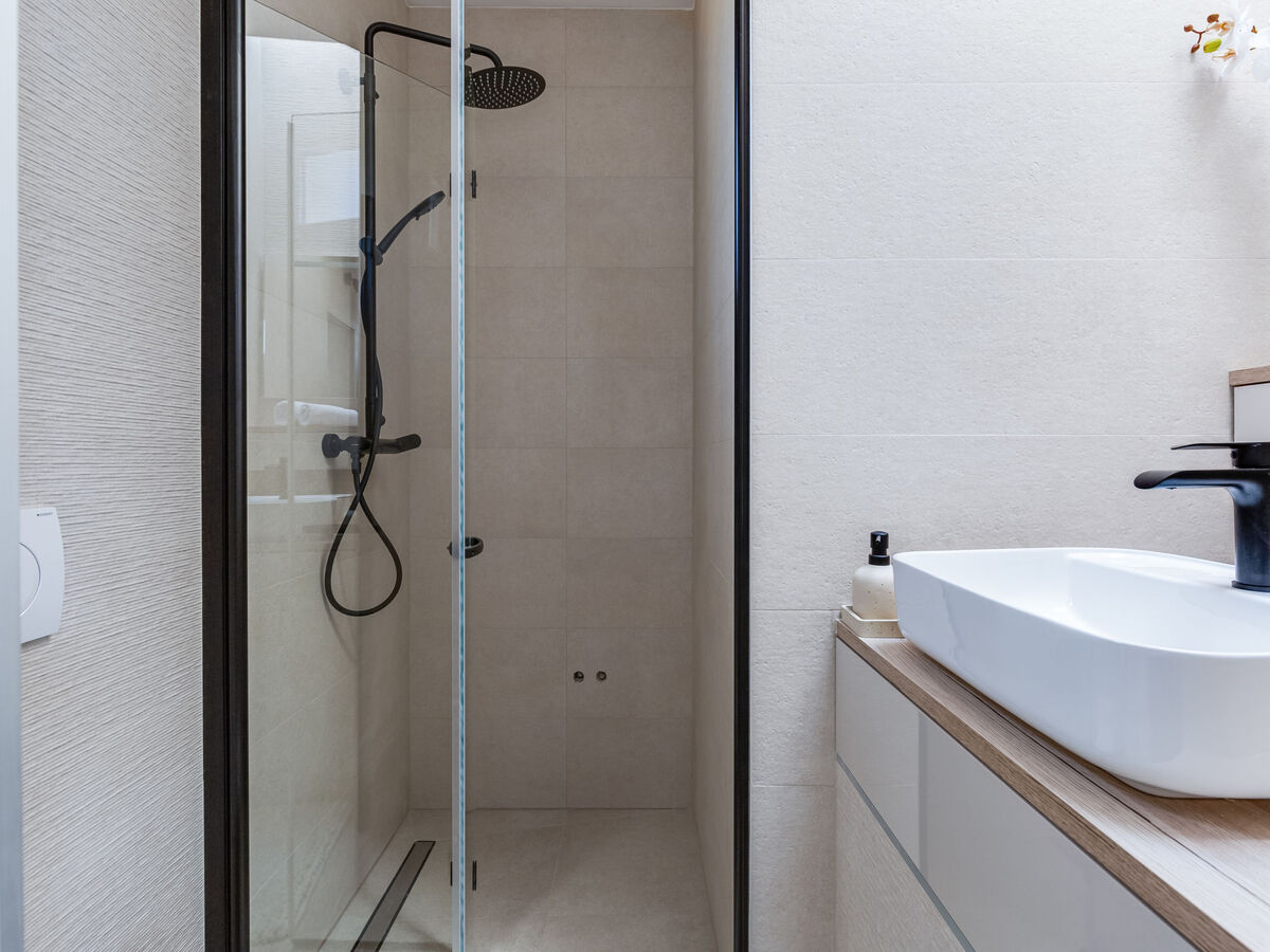 À l'étage supérieur: 2 chambres, chaque chambre avec: 1 grand-lit (180 cm, longueur 200 cm), douche/WC et TV (satellite).