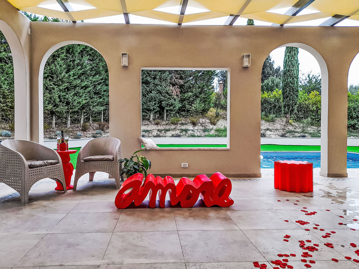 Sortie sur le jardin, sur la véranda, sur la piscine.