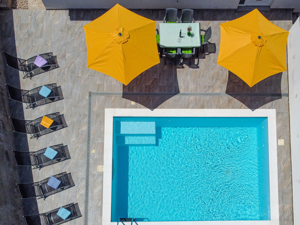 Douche extérieure, terrasse (15 m2), meubles de jardin, entretien de la piscine par le propriétaire/jardinier.