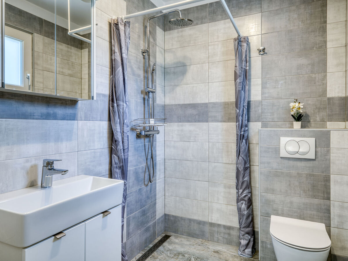 1 chambre avec 1 grand-lit (160 cm, longueur 200 cm), douche/bidet/WC.