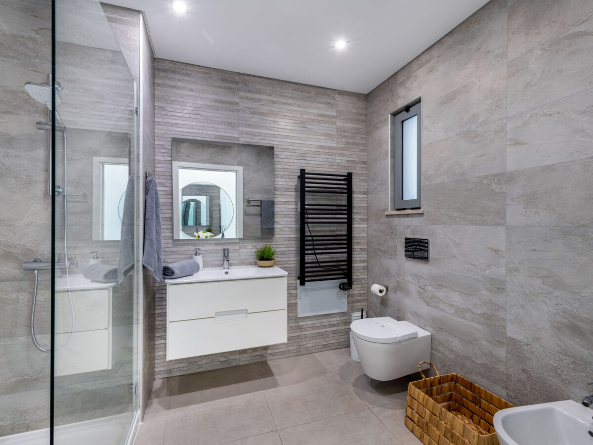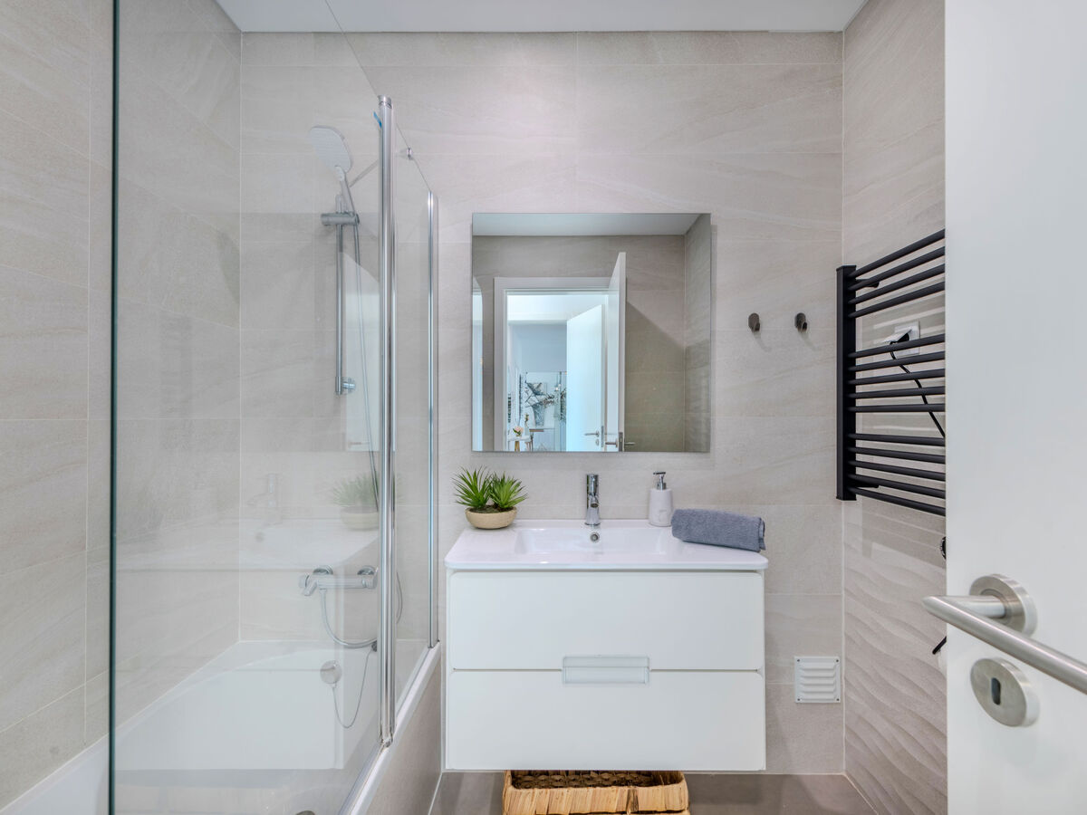 1 chambre avec 1 grand-lit (160 cm, longueur 200 cm), bain/WC, air-conditionné et chauffage à air chaud.