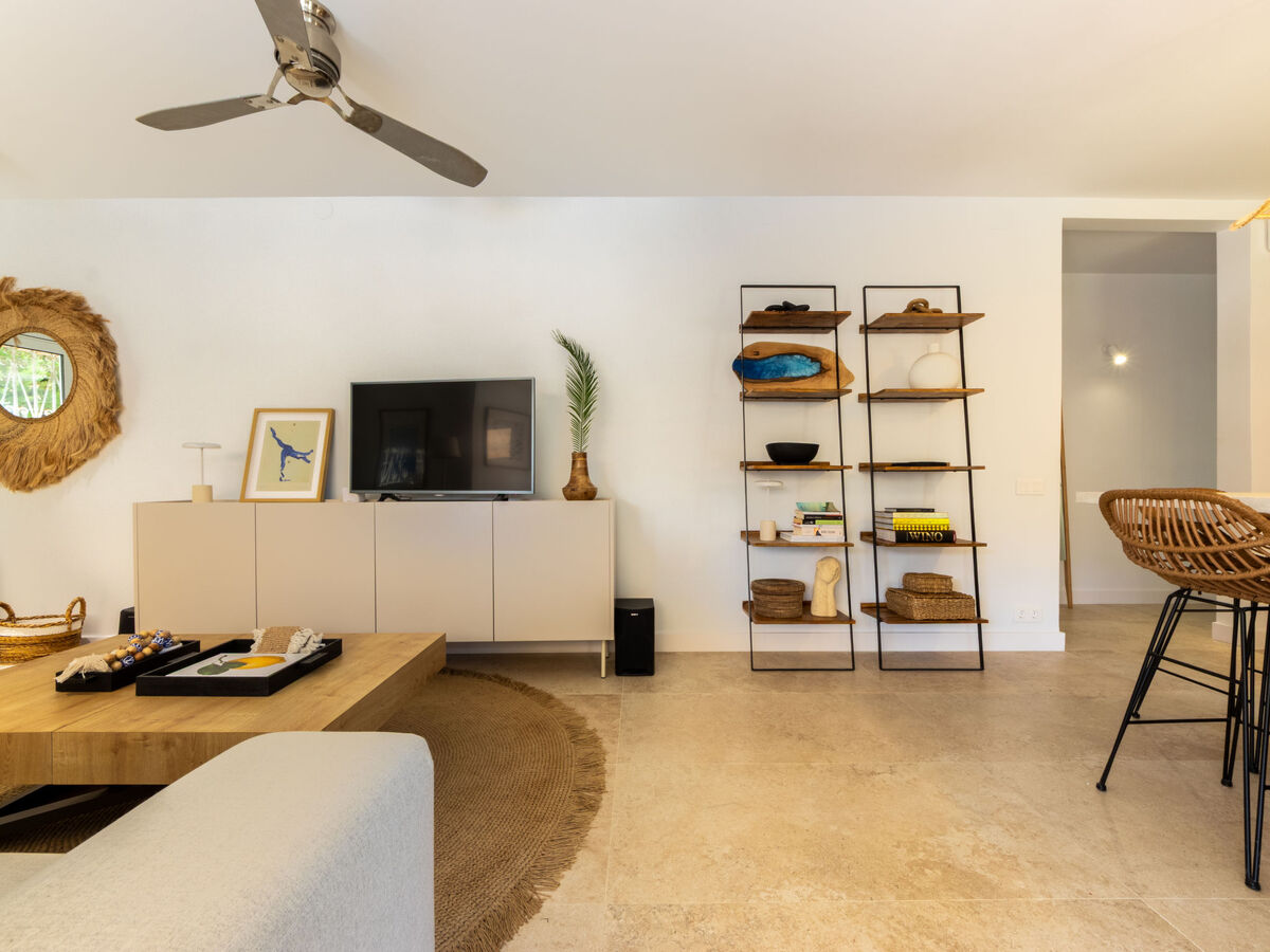 Rénovée en 2025, aménagement agréable et moderne: séjour/salle à manger avec Télévision numérique.