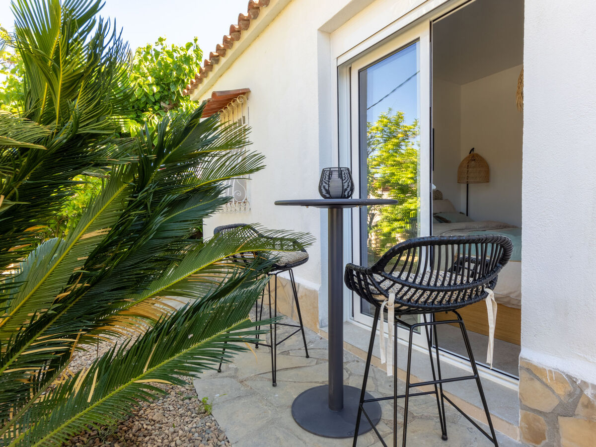 Meubles de terrasse, barbecue, place pour s'asseoir.