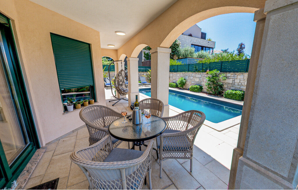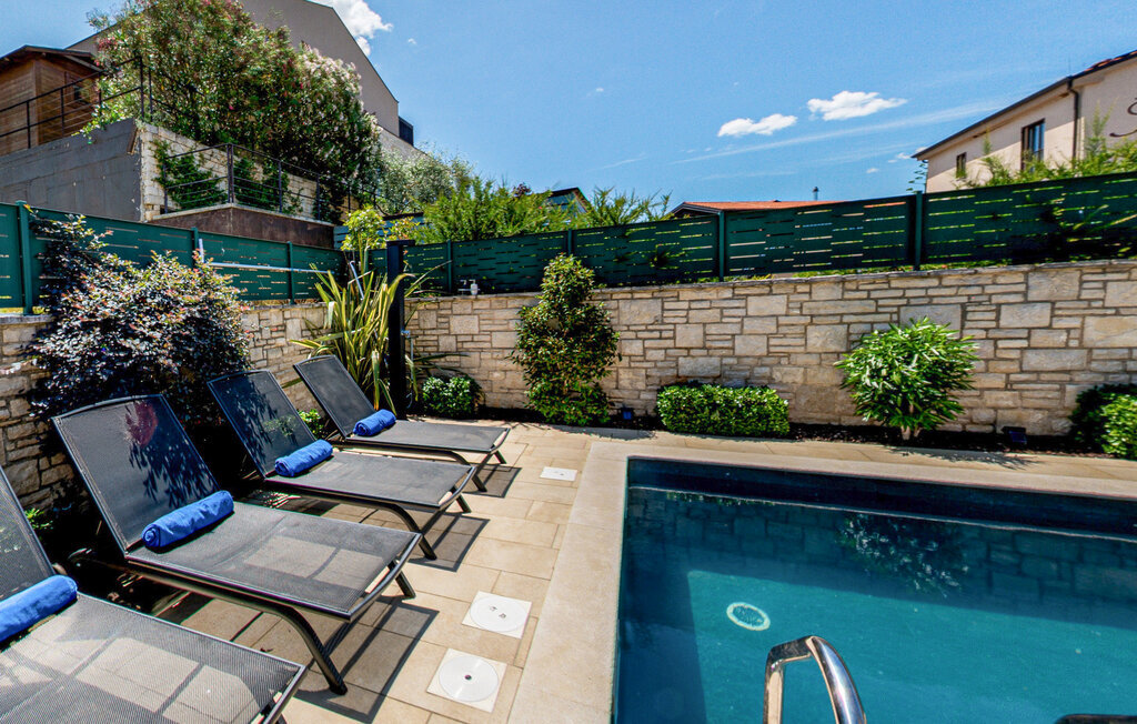 Bien-être à l'extérieur : Location de vacances disposant de chaises-longues et d'un ou plusieurs équipements tels que piscine extérieure, jacuzzi extérieur, lit à baldaquin de jardin etc...