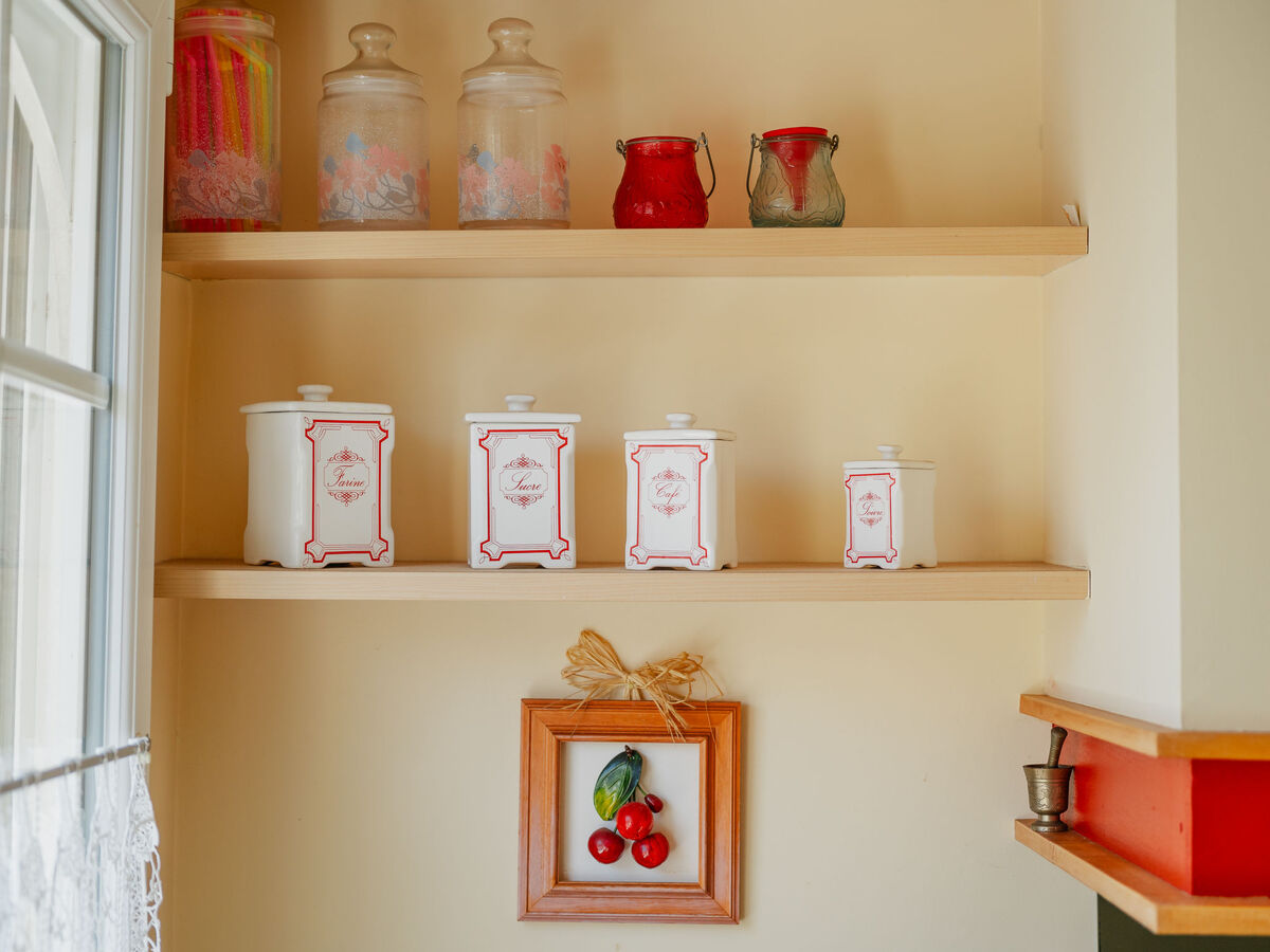 Cuisine 20 m2 (four, lave-vaisselle, Poêle à gaz, 6 feux, grille-pain, bouilloire électrique, micro-ondes, congélateur, cafetière électrique) avec table pour les repas.