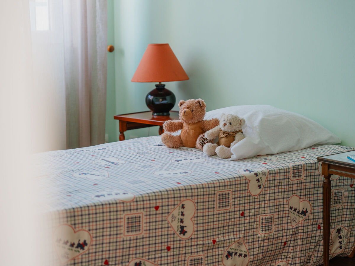 1 chambre avec 1 grand-lit (140 cm, longueur 190 cm).