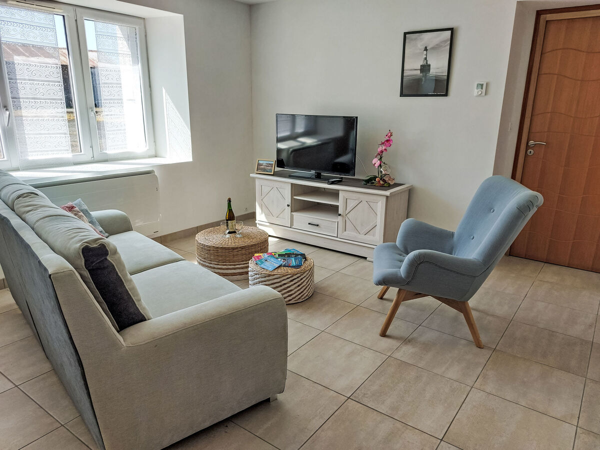 Spacieux, rénovée en 2024, aménagement agréable et plaisant: séjour 30 m2, ouvert avec TV (écran plat).