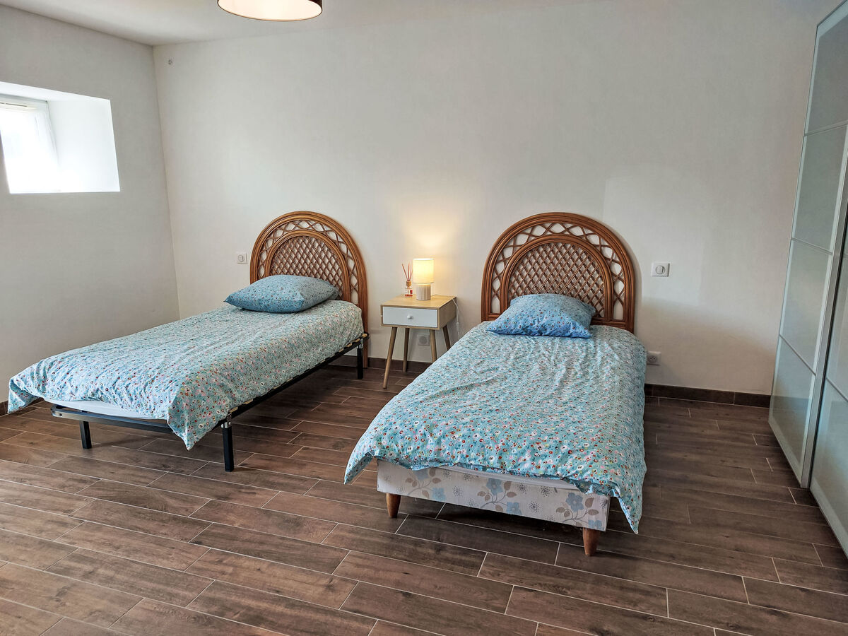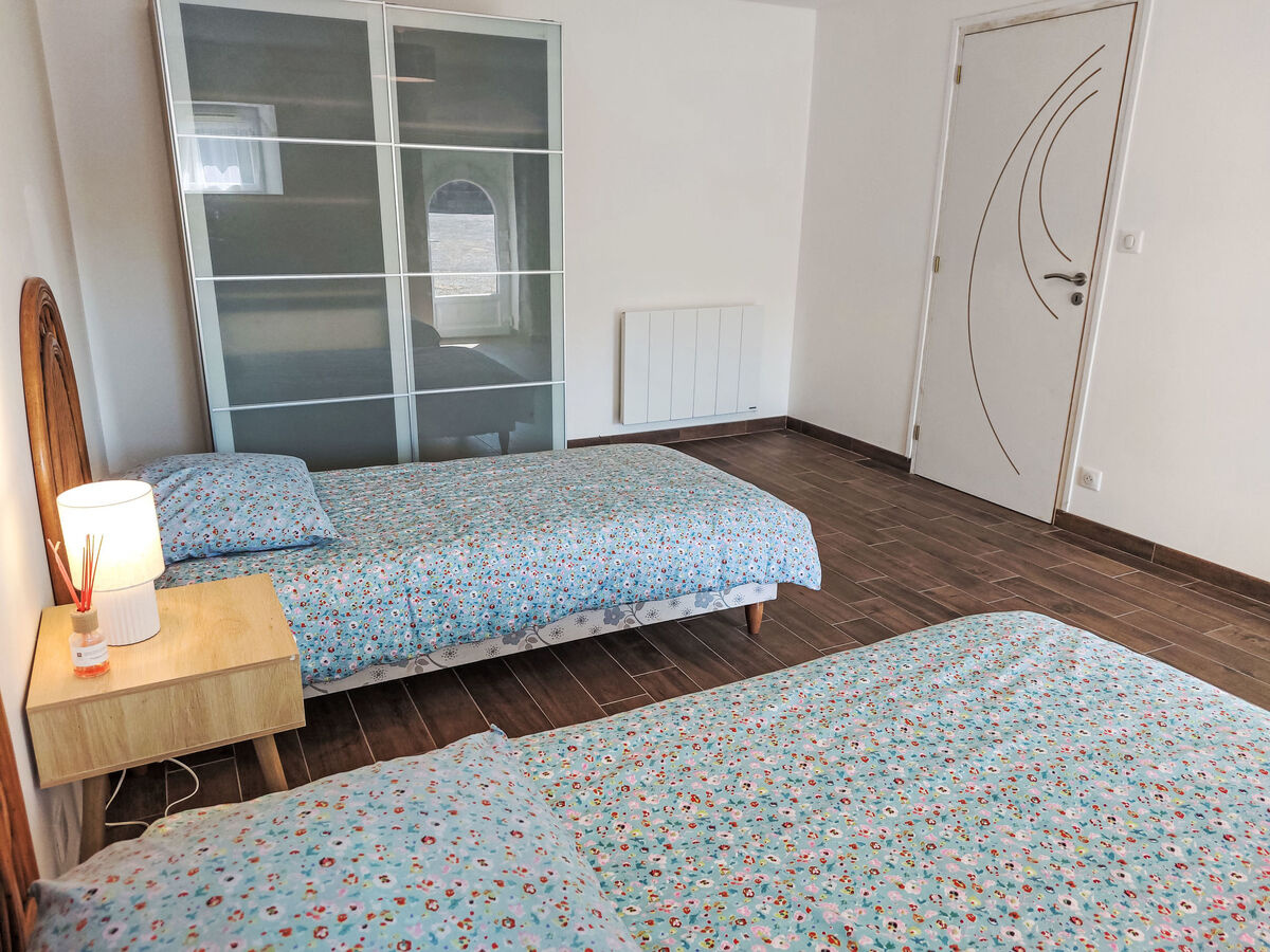 1 chambre 24 m2 avec 2 lits (90 cm, longueur 190 cm).