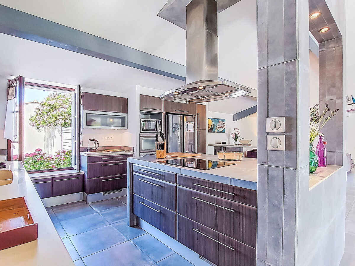 Grande cuisine ouverte (four, lave-vaisselle, 4 plaques vitrocéramiques, grille-pain, bouilloire électrique, micro-ondes, cafetière électrique, ilot de cuisine).