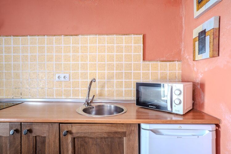 Rez-de-chaussée: (Entrée(accès par l'extérieur), cuisine ouverte(foyer(2 foyers, électrique), grille-pain, cafetière/percolateur, micro ondes, combinaison réfrigérateur/congélateur), salle à manger-salon(TV(écran plat, smart TV), table, coin salon, chauffage, climatisation), chambre(lit double(135 x 200 cm)), salle de bains(douche a jets, lavabo, WC, sèche-cheveux), climatisation(mobile)) lave-linge