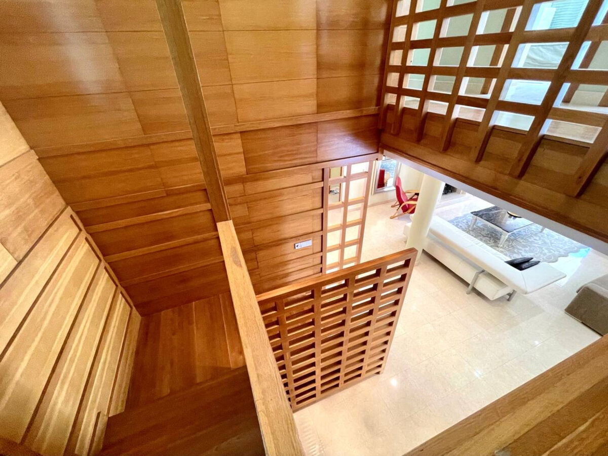 À l'étage supérieur: 1 chambre avec Dressing avec 1 grand-lit, douche/WC, TV, air-conditionné et chauffage à air chaud.