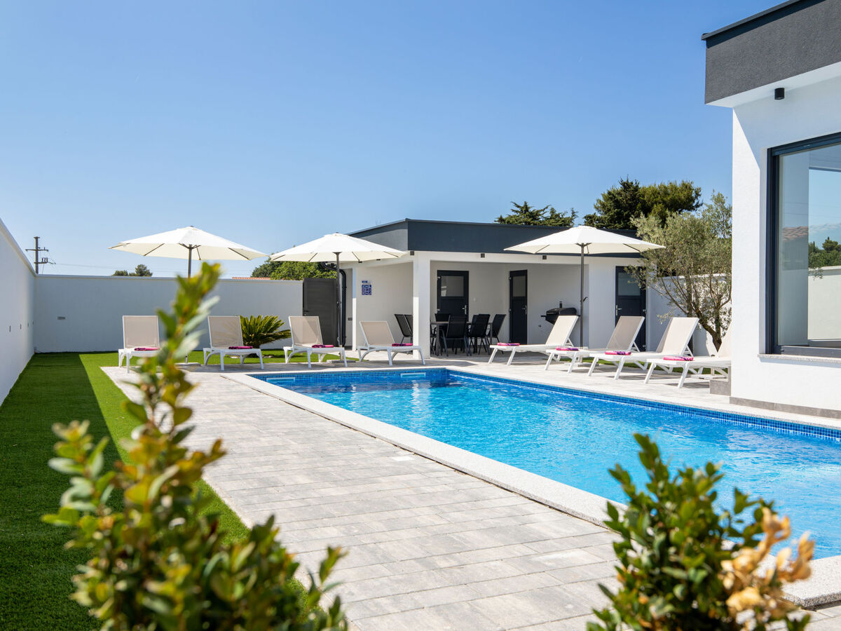 A usage privé: terrain 450 m2 (clôturé), piscine rectangulaire, chauffée (35 m2, profondeur 140 cm, disponibilité saisonnière: 01.Mai.