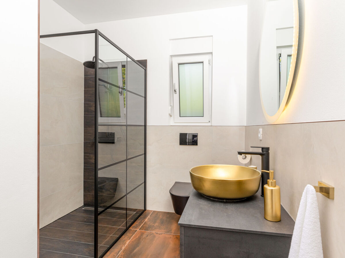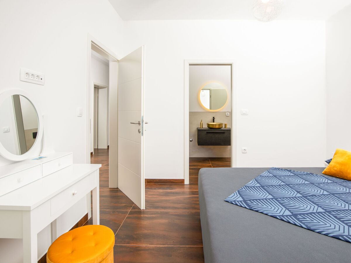 2 chambres, chaque chambre avec: 1 grand-lit (160 cm, longueur 200 cm), douche/WC.