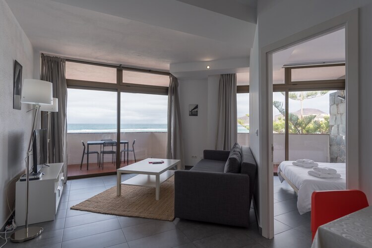 Découvrez le grand balcon privé et admirez la vue imprenable sur la mer. Savourez votre café du matin ou un verre en soirée en admirant le coucher de soleil ; par temps clair, vous pourriez même apercevoir le mont Teide à Tenerife.