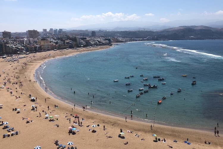 Plongez dans le luxe côtier avec cet élégant havre de paix d'une chambre, idéalement situé sur le sable doré de la Playa de Las Canteras à Las Palmas de Gran Canaria. Ce havre de paix de 50 m² en bord de mer est idéal pour deux personnes, alliant confort, style et beauté naturelle époustouflante, avec une vue panoramique sur l'océan et les montagnes. Réveillez-vous au son des vagues et savourez votre café du matin sur la terrasse privée de 9 m², à deux pas de la mer.