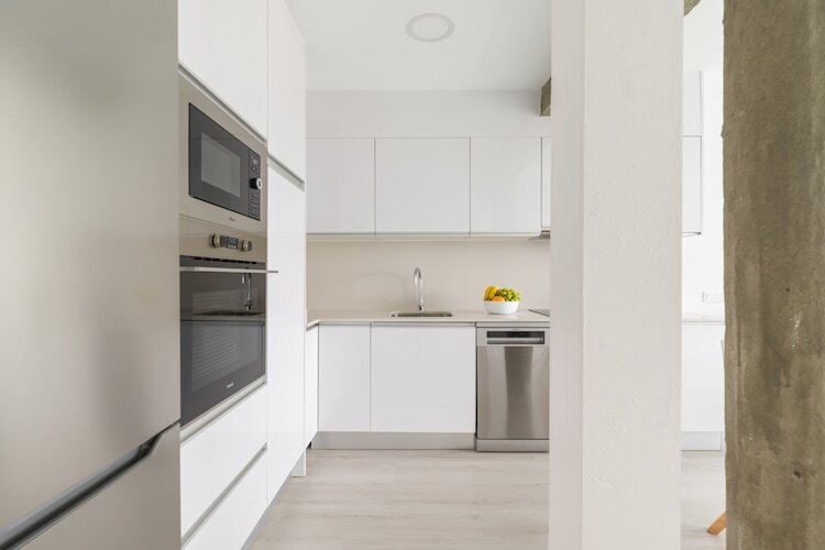 Le studio bénéficie d'un design ouvert et élégant, baigné de lumière naturelle et doté d'un mobilier contemporain. La cuisine moderne comprend tout le nécessaire pour un séjour autonome : plaque de cuisson vitrocéramique, four, micro-ondes, réfrigérateur, congélateur, lave-vaisselle et petits électroménagers comme un grille-pain, une cafetière et un presse-agrumes. Restez connecté grâce au Wi-Fi, détendez-vous avec la télévision et la radio, et profitez d'un confort optimal toute l'année grâce à la climatisation et à la pompe à chaleur. Des équipements supplémentaires comme un lave-linge, un sèche-linge, un fer à repasser et un sèche-cheveux en font un choix idéal pour les escapades de courte ou longue durée.