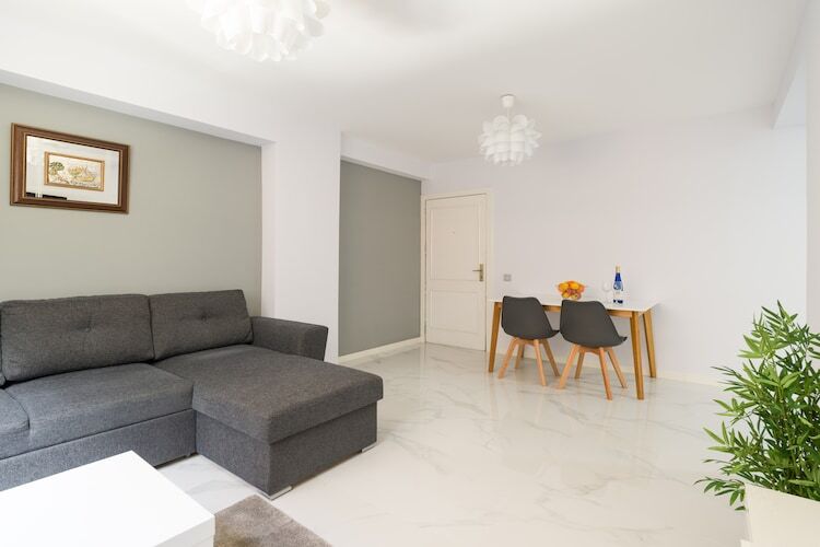 L'appartement comprend une chambre confortable, un salon lumineux et une cuisine entièrement indépendante équipée de plaques vitrocéramiques, d'un réfrigérateur, d'un micro-ondes, d'un four, d'un congélateur, d'une cafetière, d'un grille-pain, d'une bouilloire et d'ustensiles de cuisine : tout le nécessaire pour vous sentir comme chez vous. Vous y trouverez également le Wi-Fi, un lave-linge, un fer à repasser, un sèche-cheveux et une télévision à écran plat.