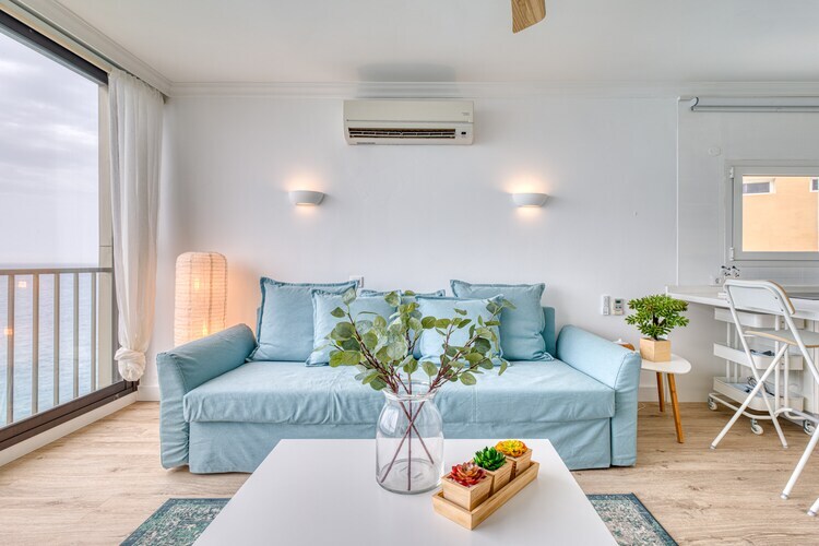 Au 2ème étage: (Salle de séjour(canapé-lit double, TV(écran plat, smart TV), table, coin salon, radio), cuisine ouverte(foyer(induction), bouilloire, grille-pain, cafetière/percolateur, four, micro ondes, Presse-agrumes, , Wine glasses), chambre(lit double), salle de bains(douche, sèche-cheveux)) , , Accès Internet, lave-linge , piscine(partagé avec d'autres clients), fer à repasser, pompe à chaleur air/air,