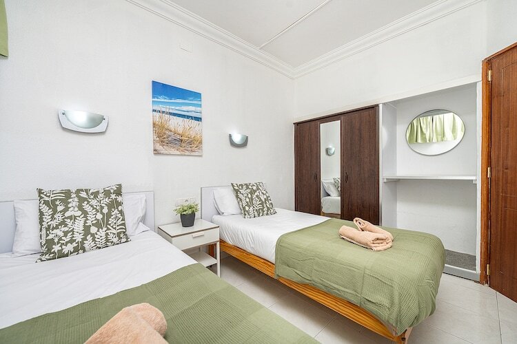 Au 5ème étage: (Salle de séjour(TV(écran plat, smart TV), table, coin salon), cuisine ouverte(bouilloire, grille-pain, cafetière/percolateur, micro ondes, combinaison réfrigérateur/congélateur, Presse-agrumes, plaques chauffantes électriques, , Wine glasses), chambre(lit simple, lit simple), salle de bains(douche, sèche-cheveux)) Accès Internet, Meubles de jardin, solarium, lave-linge , piscine(partagé avec d'autres clients, extérieur), ascenseur, fer à repasser, ,