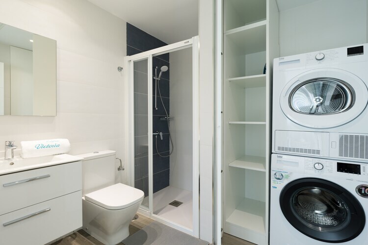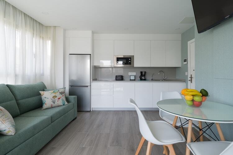 L'intérieur est lumineux et bien équipé, avec une chambre confortable, une salle de bain élégante et un spacieux séjour. Vous profiterez d'une terrasse privée de 5 m², d'un balcon, du Wi-Fi, d'une télévision et d'une cuisine indépendante entièrement équipée avec plaques vitrocéramiques, réfrigérateur, micro-ondes, etc. Un lave-linge, un sèche-linge, un fer à repasser et un sèche-cheveux sont également inclus pour votre confort.