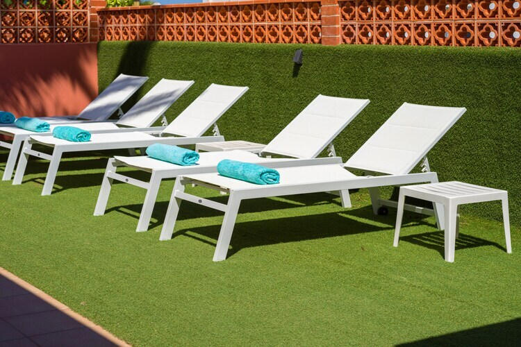 La villa dispose d'une cuisine américaine entièrement équipée, d'un spacieux salon-salle à manger et d'une fluidité parfaite entre l'intérieur et l'extérieur. À l'extérieur, vous trouverez un jardin privé où vous trouverez votre propre piscine, des chaises longues et une terrasse ombragée, idéale pour prendre un café le matin ou un barbecue au coucher du soleil. Pour un confort optimal, vous bénéficierez du Wi-Fi haut débit, de la climatisation, de la télévision par satellite, d'un lave-linge et d'un parking privé.