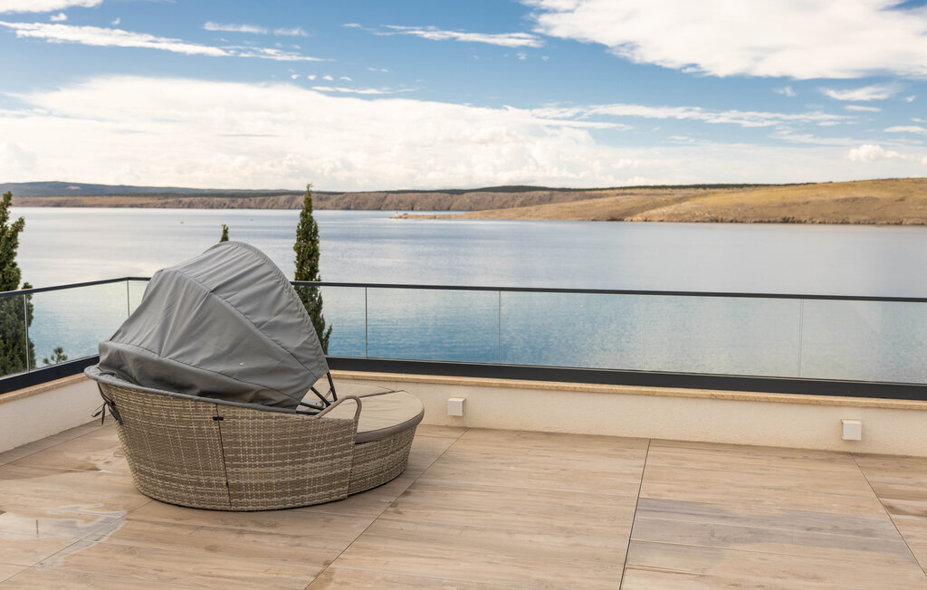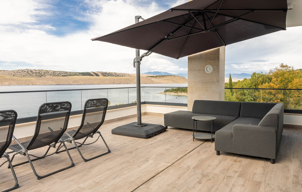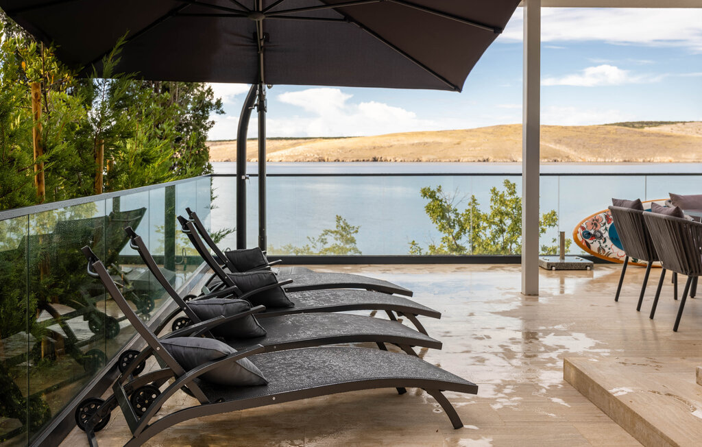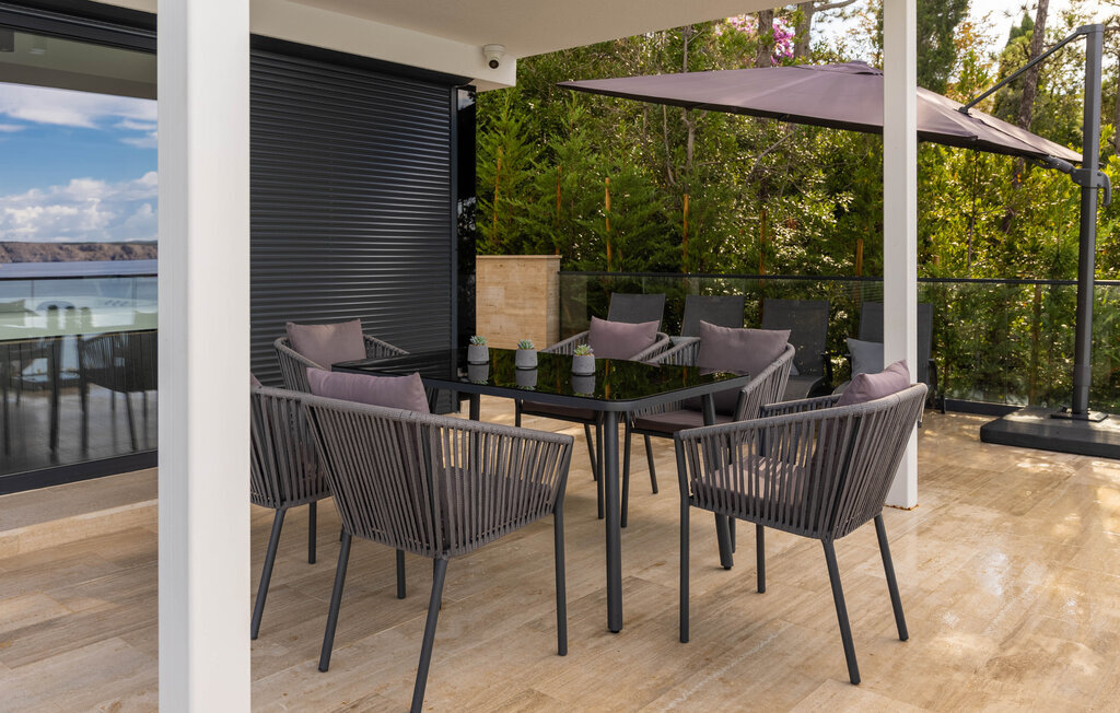 Sur la belle terrasse panoramique, vous pouvez laisser votre regard se perdre sur la mer. Rafraîchissez-vous dans la magnifique piscine, prenez un "sundowner" dans le lounge accueillant et allumez le barbecue le soir pour bavarder dans la nuit d'été avec du vin et à la lueur des bougies.