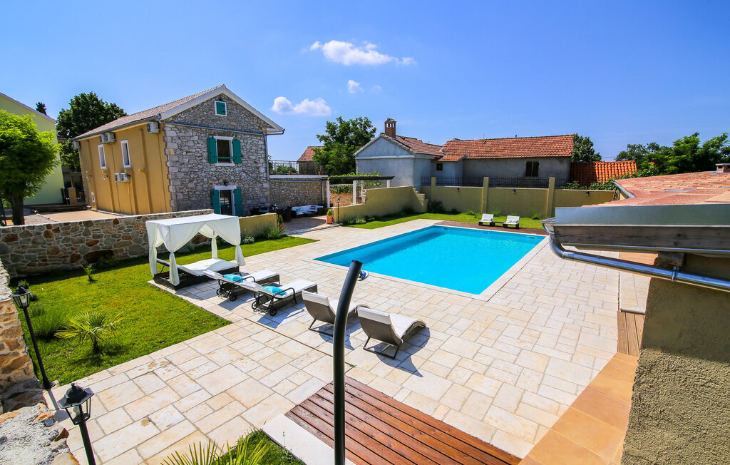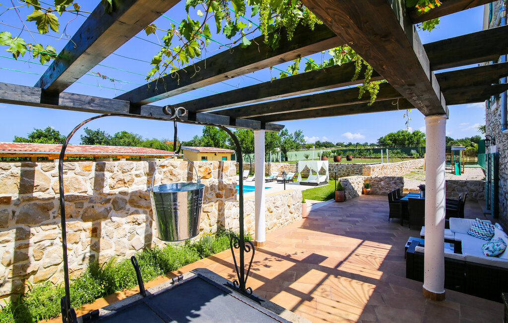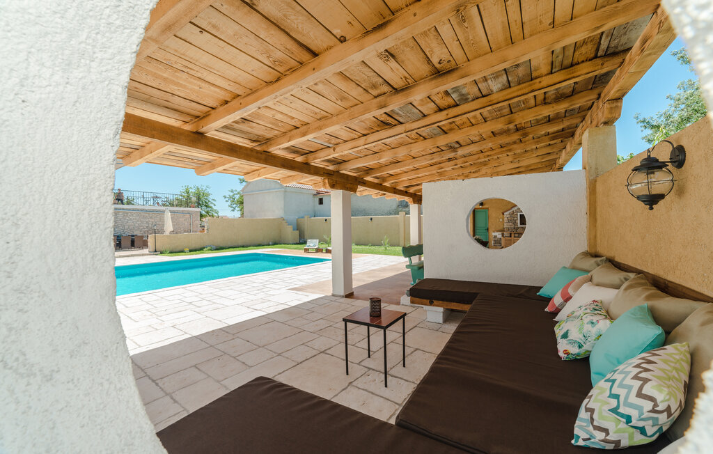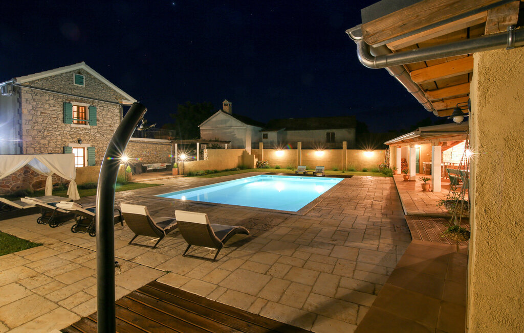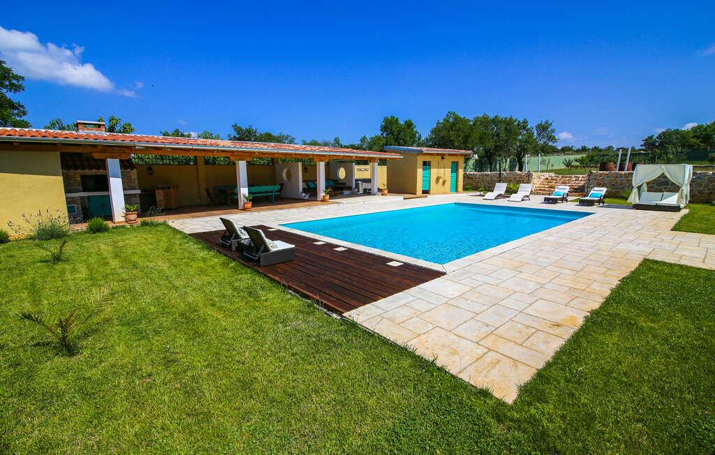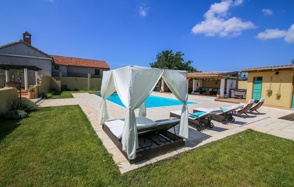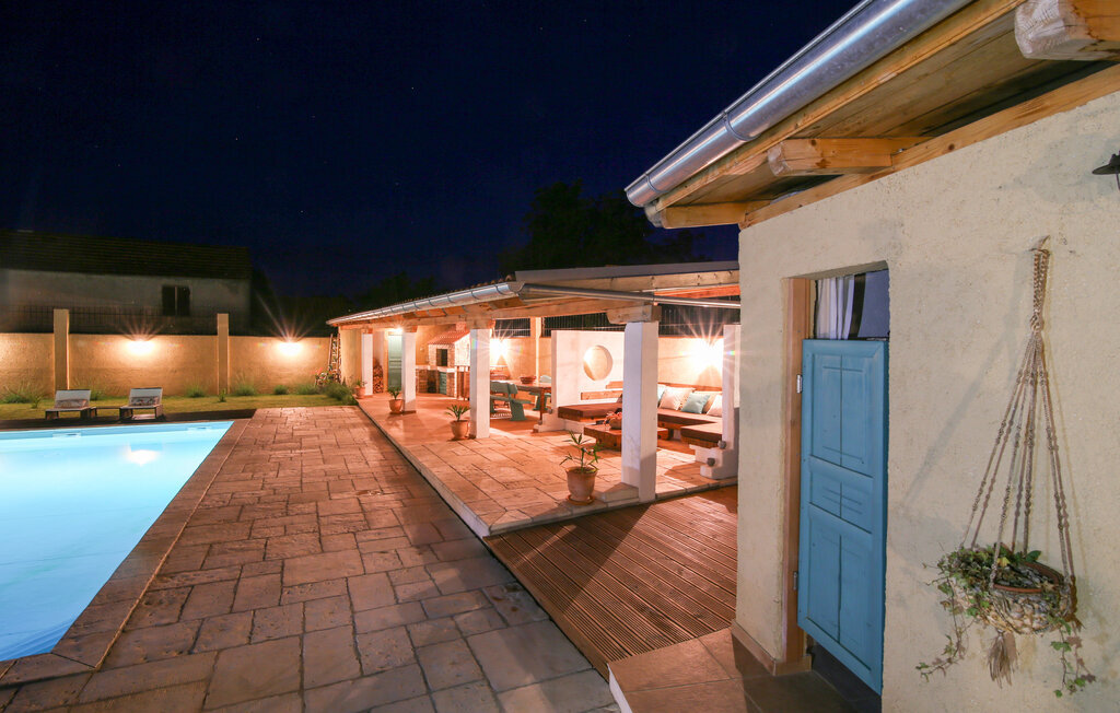 Bien-être à l'extérieur : Location de vacances disposant de chaises-longues et d'un ou plusieurs équipements tels que piscine extérieure, jacuzzi extérieur, lit à baldaquin de jardin etc...