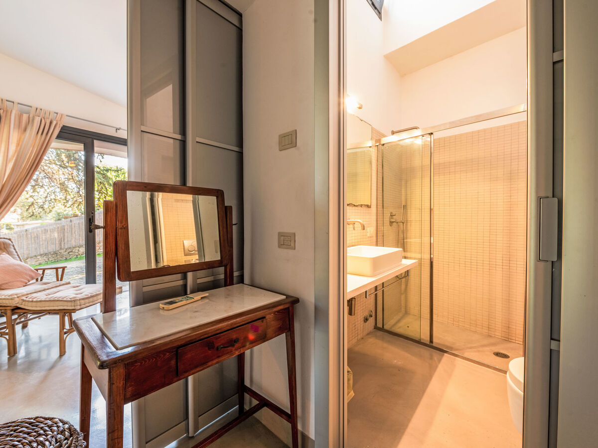 À 500 m du centre de Porto Santo Stefano, quartier résidentiel, excellente situation: centrale mais tranquille, à 100 m de la mer, à 100 m de la plage, dans la verdure, dans une zone piétonne.