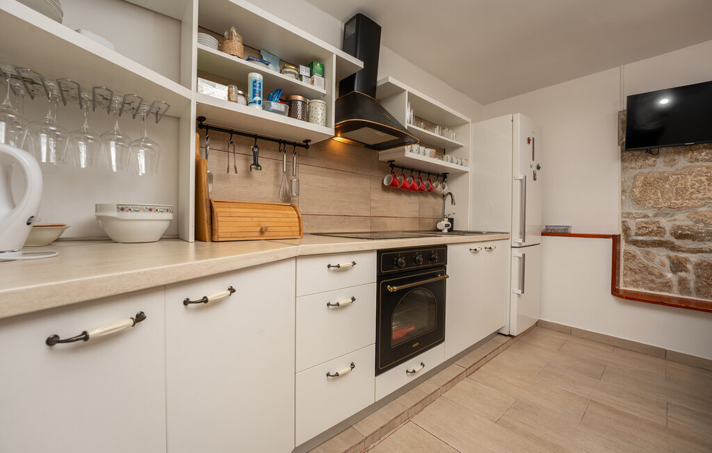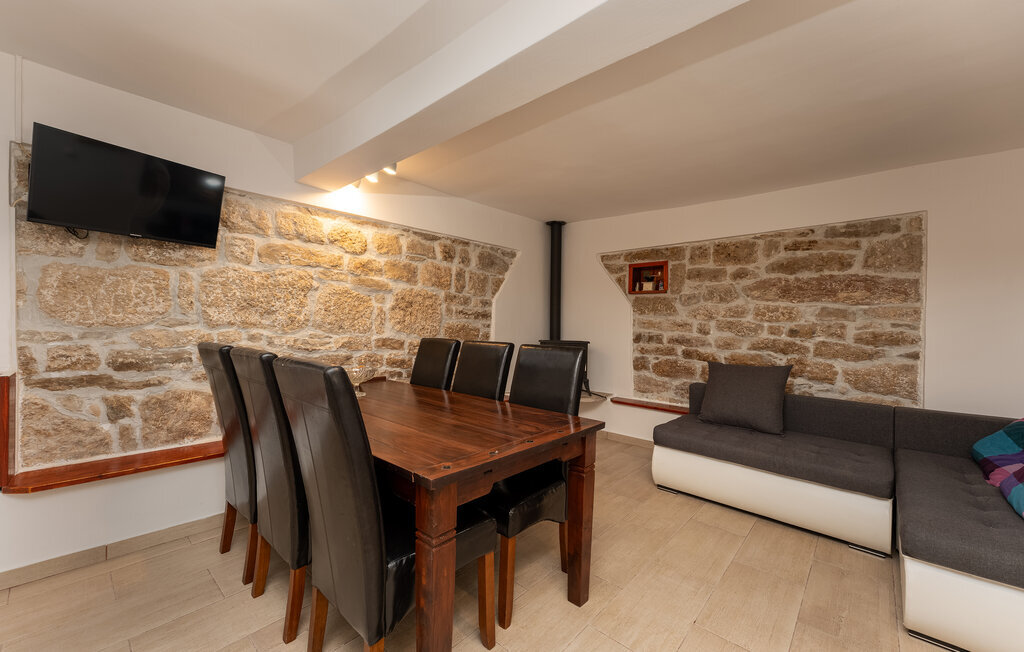 Bienvenue dans cette maison de vacances rénovée avec goût, dans laquelle les murs rustiques en pierre naturelle combinés à un aménagement moderne créent une atmosphère confortable. Dans la cuisine ouverte, vous concoctez vos plats préférés que vous dégustez à la table accueillante pendant que vous planifiez vos activités ou que vous discutez de ce que vous avez vécu autour d'un verre de vin. Consacrez du temps à vos proches lors d'une joyeuse soirée de jeux ou regardez ensemble en streaming un film qui plaira à tous.