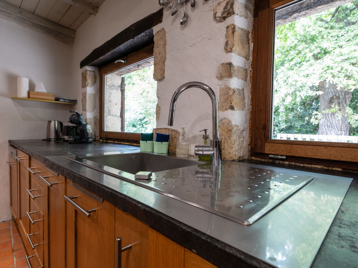 Cuisine 15 m2 (four, lave-vaisselle, Poêle à gaz, 5 feux, grille-pain, bouilloire électrique, micro-ondes, congélateur, cafetière électrique, Capsules pour machine à café (Senseo) (NON INCLUSES)) avec air-conditionné.