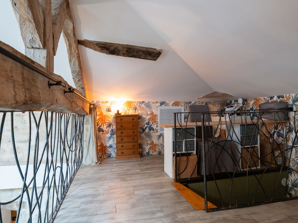 À l'étage supérieur: galerie 15 m2, mansardée, ouverte.