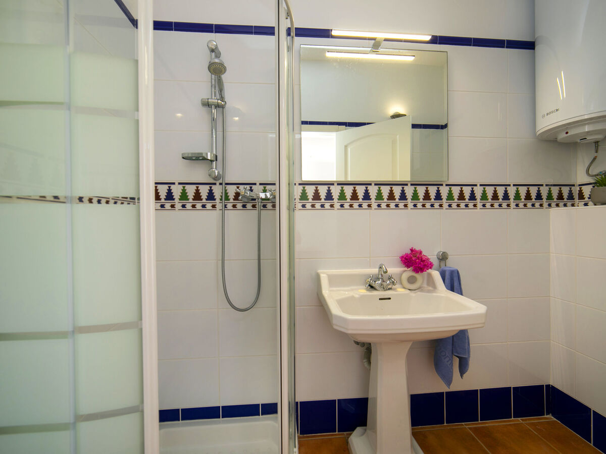 À l'étage inférieur: 1 chambre avec 2 lits (90 cm, longueur 200 cm), 1 grand-lit (160 cm, longueur 200 cm), lavabo, douche/WC, air-conditionné et chauffage à air chaud.