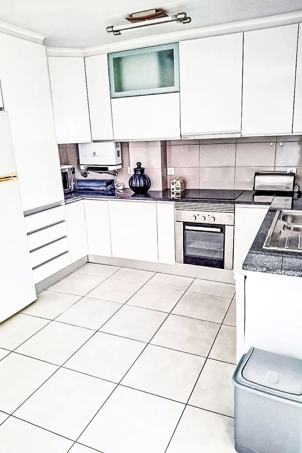 Cuisine ouverte (four, lave-vaisselle, 4 plaques vitrocéramiques, grille-pain, bouilloire électrique, micro-ondes, congélateur, cafetière électrique, Capsules pour machine à café (Dolce Gusto not incl)).