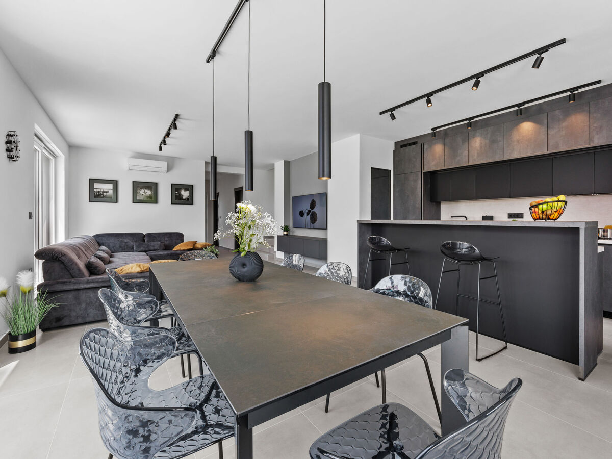 Aménagement moderne: séjour/salle à manger avec TV (satellite) (écran plat), air-conditionné.