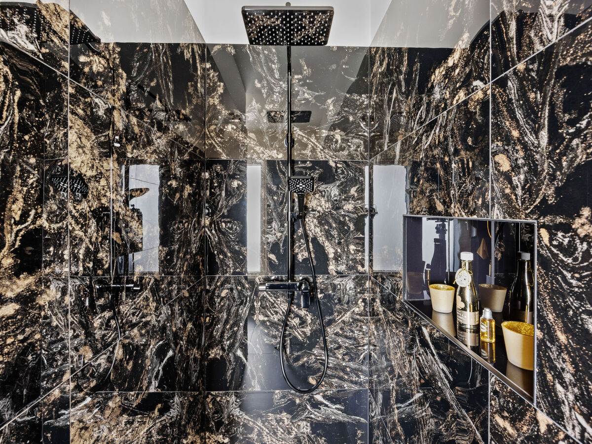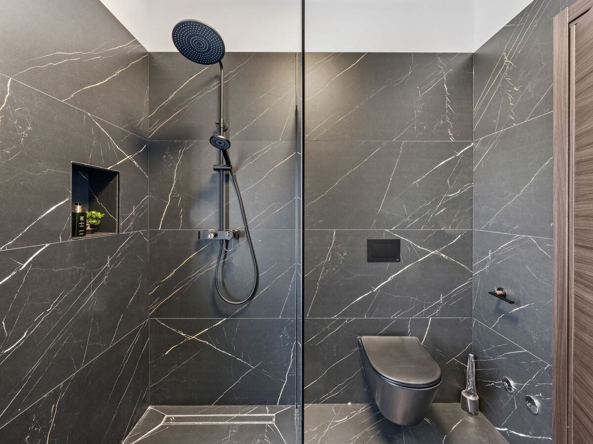 À l'étage supérieur: 1 chambre avec 1 grand-lit (180 cm, longueur 200 cm), douche/WC et TV (satellite) (écran plat), air-conditionné.