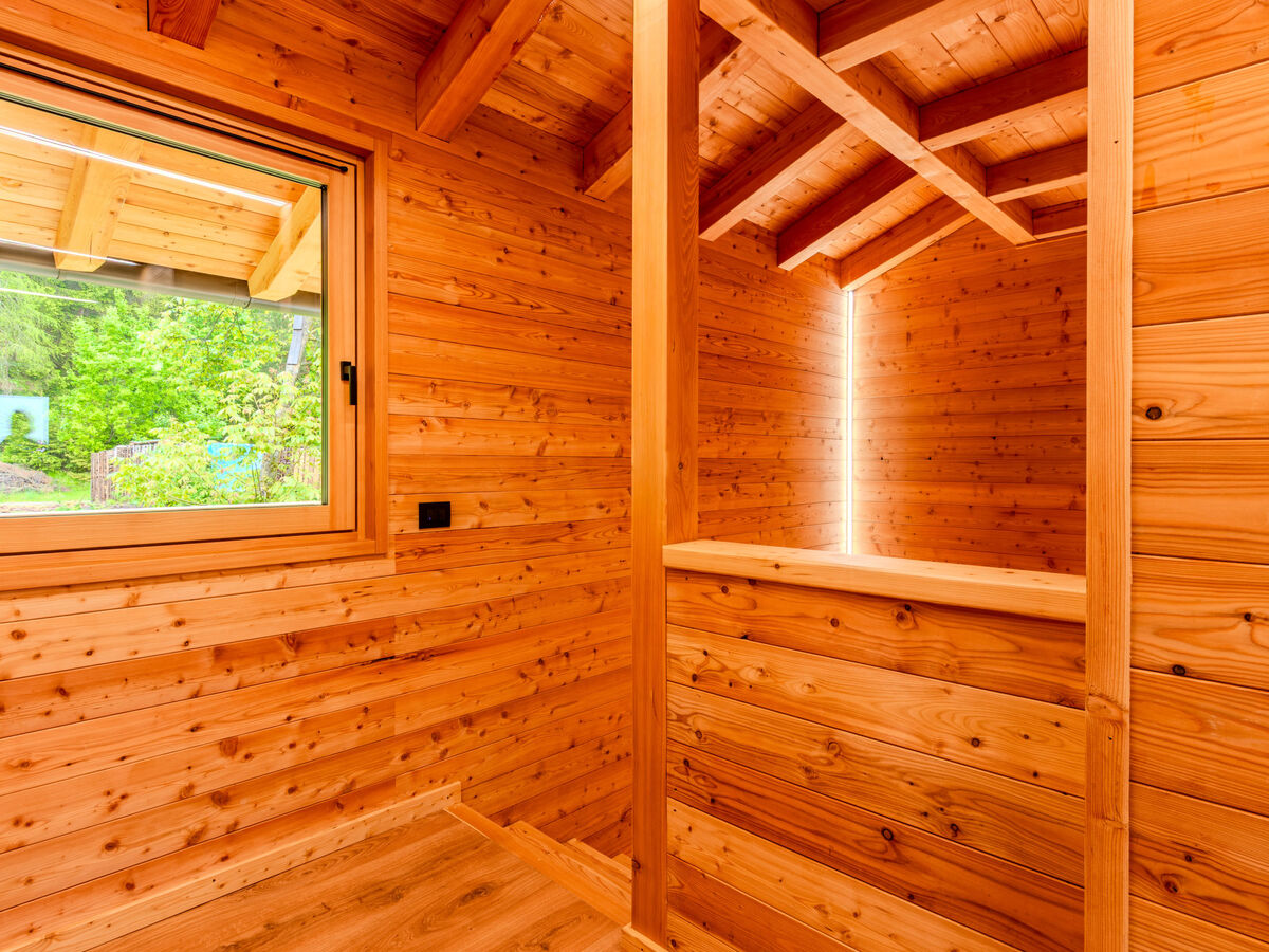 Dans le quartier de Preghena, situation ensoleillée sur une colline, à 20 m de la forêt, à 13 km du lac, à 20 km du domaine skiable, dans la verdure, orientée sud.